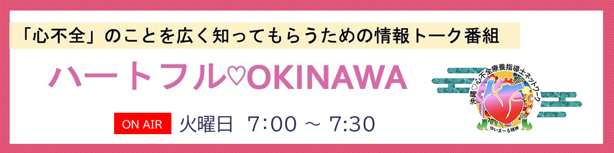 ラジオ番組「ハートフルOKINAWA」は沖縄県心不全療養指導士ネットワーク協賛の健康トーク番組で、心不全はどんな病気なのか、心不全にならないための方法、心不全になった時の療養行動をわかりやすくお伝えしています。